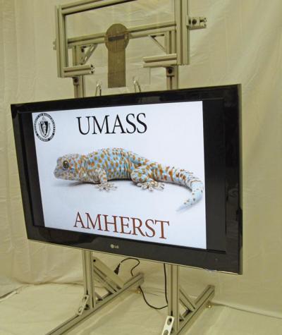 AMHERST, Mass. – For years, biologists have been amazed by the power of gecko feet, which let these 5-ounce lizards produce an adhesive force roughly equivalent to carrying nine pounds up a wall without slipping. Now, a team of polymer scientists and a biologist at the University of Massachusetts Amherst have discovered exactly how the gecko does it, leading them to invent "Geckskin," a device that can hold 700 pounds on a smooth wall.