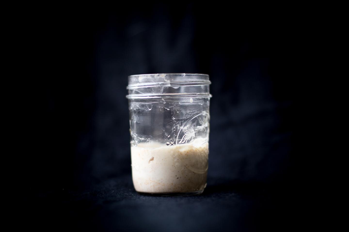 image: This image shows sourdough starter in a mason jar. In a recent study of 500 sourdough starters, spanning four continents, scientists garnered new insights into the environmental factors that contribute to each sourdough starter's microbial ecosystem, and how different types of microbes influence both a sourdough's aroma and how quickly the sourdough rises.