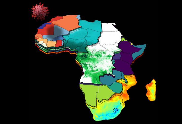 image: The modeling tool incorporates current case data, population, economic status, current mitigation efforts and meteorological sensing from satellites to project how COVID-19 might spread in and among African countries.