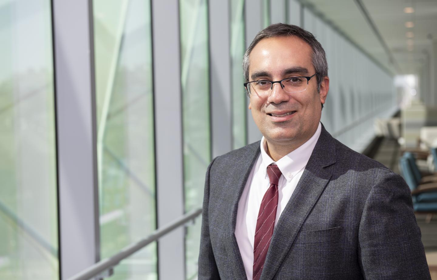 image: Ahmad Sedaghat, M.D., Ph.D., shown at the University of Cincinnati Gardner Neuroscience Institute.