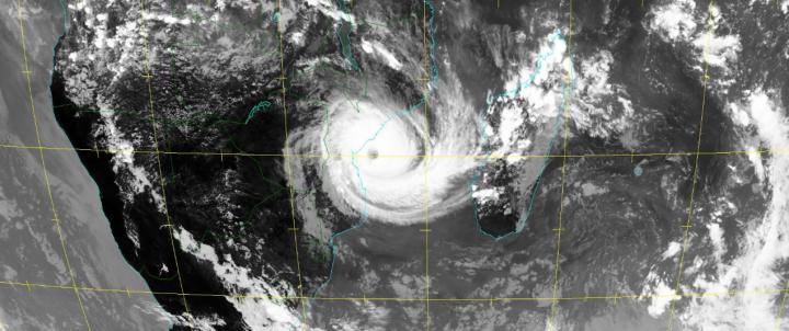 image: Tropical Cyclone Idai just before making landfall over Beira on 14 March 2018. There is evidence that the number of intense tropical cyclones will increase globally under low mitigation climate change futures.