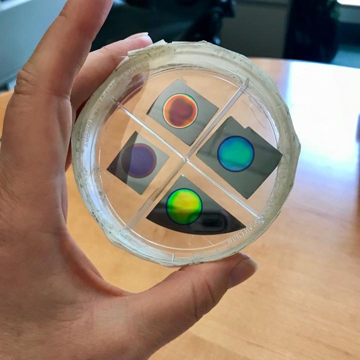 "Most people are familiar with silicon as being the material inside your computer, but it has endless uses," she said. "With our nanoscale porous silicon, we've created these nanoscale holes that are a thousand times smaller than your hair. Those selectively capture molecules when pre-treated with the appropriate surface coating, darkening the silicon, which the app detects."