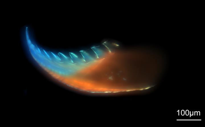 "It is precisely this combination of high strength and deformability that is normally characteristic of metals," says Luis Zelaya-Lainez, the study's lead author, who used materials science techniques to examine the tiny jaws. "Here we are dealing with a completely different material, but interestingly, the metal atoms still provide strength and deformability there, just like in a piece of metal."