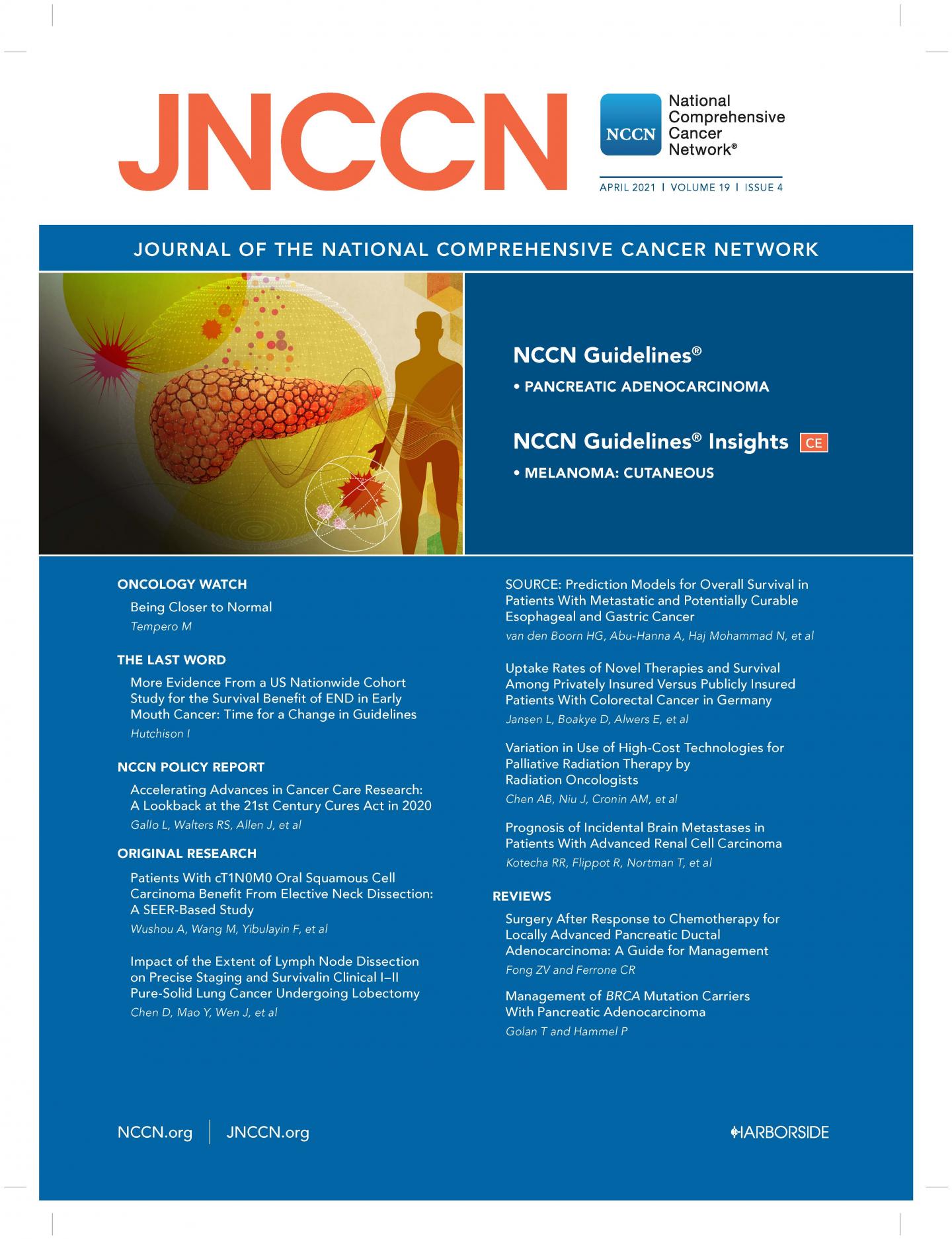 PLYMOUTH MEETING, PA [April 13, 2021] -- The April 2021 issue of JNCCN--Journal of the National Comprehensive Cancer Network publishes new research from Memorial Sloan Kettering Cancer Center (MSK) and Gustave Roussy Institute, which suggests that baseline brain imaging should be considered in most patients with metastatic kidney cancer. The researchers studied 1,689 patients with metastatic renal cell carcinoma (mRCC) who had been considered for clinical trial participation at either of the two institutions between 2001 and 2019 and had undergone brain imaging in this context, without clinical suspicion for brain involvement. The researchers discovered 4% had asymptomatic brain metastases in this setting. This group was found to have a low median 1-year overall survival rate (48%), and median overall survival (10.3 months).