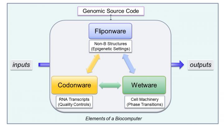 Those repeat sequences that are able to switch from one DNA structure to another are called flipons. Collectively, Dr. Herbert refer to these flipons and their associated functionality as fliponware. Fliponware sets the stage for a cell to make the right wetware tools and run the right genetic program to get the job at hand done. It allows assembly of gene pieces into different RNA-based programs for a cell to overcome challenges from its environment.