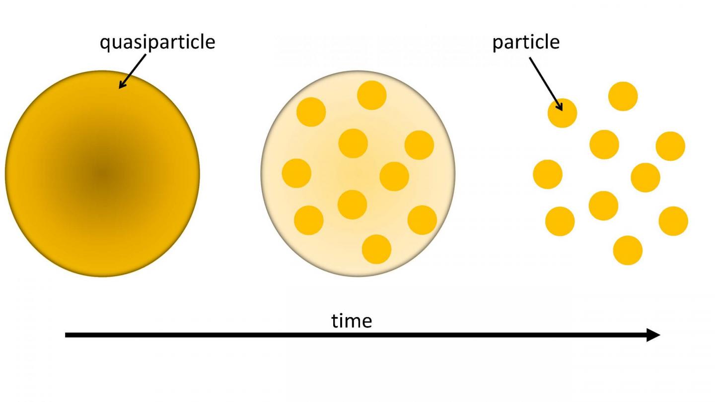 image: Over time, many-body dephasing kills the quasiparticle's resemblance to a single particle.