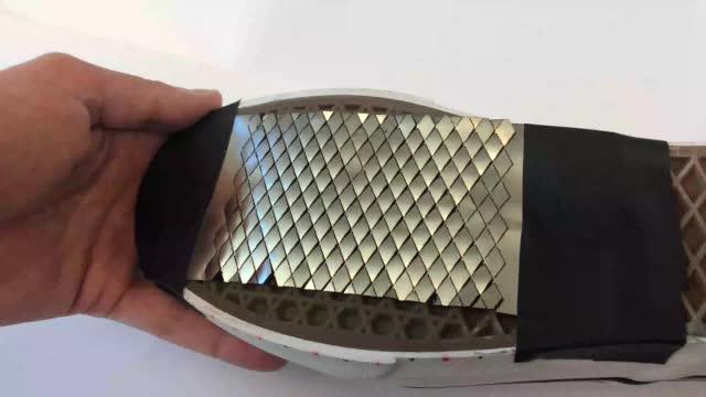 video: This pop-up shoe grip, inspired by snake skin, increases friction between the shoe and the ground. When the material stretches, the cuts pop out into spikes that dig into the ground. When the foot flattens, the spikes fold back into the material, creating a smooth surface again.