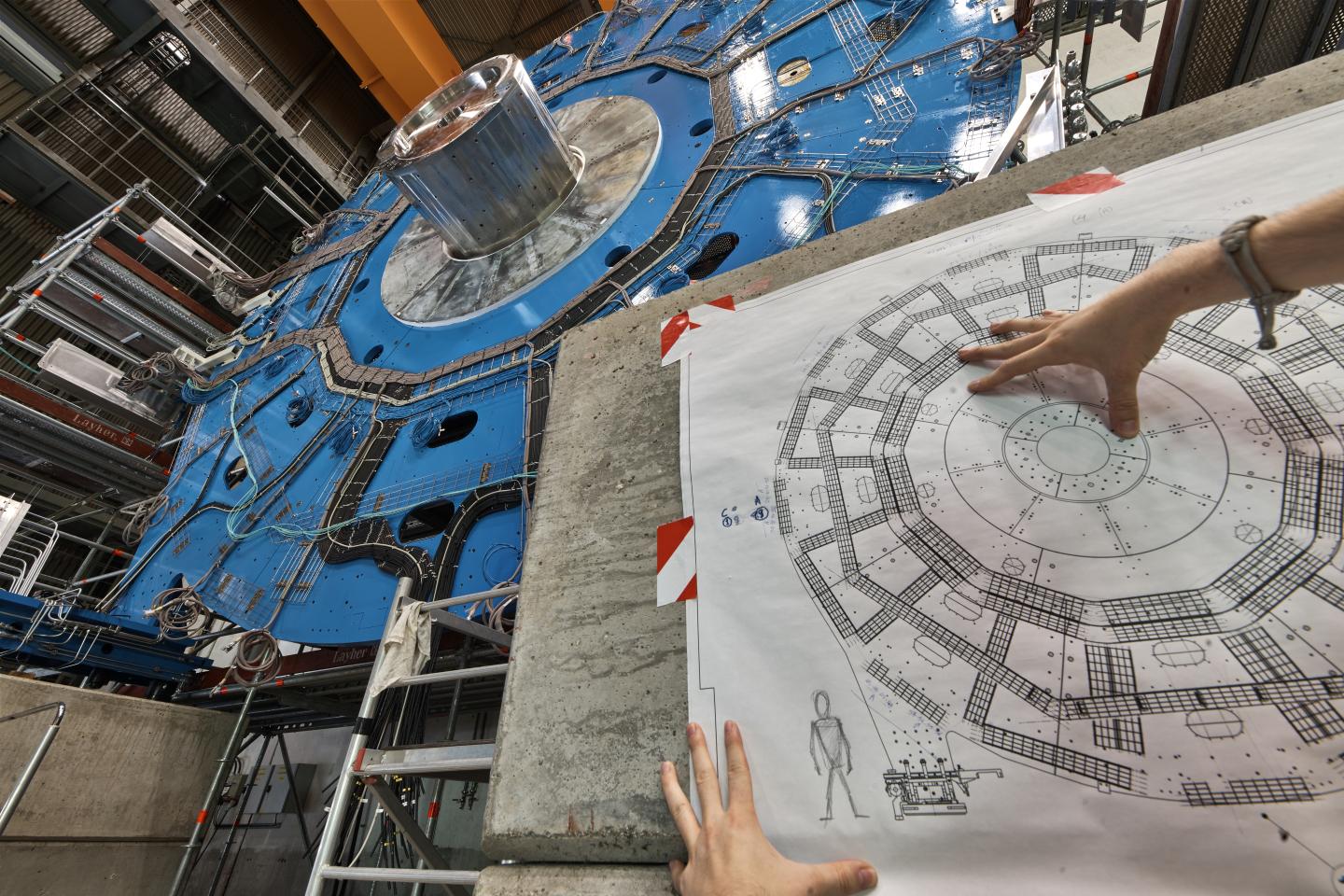 image: A wheel-shaped muon detector is part of an ATLAS particle detector upgrade at CERN. A new study applies "unfolding," or error-correction techniques used for particle detectors, to problems with noise in quantum computing.