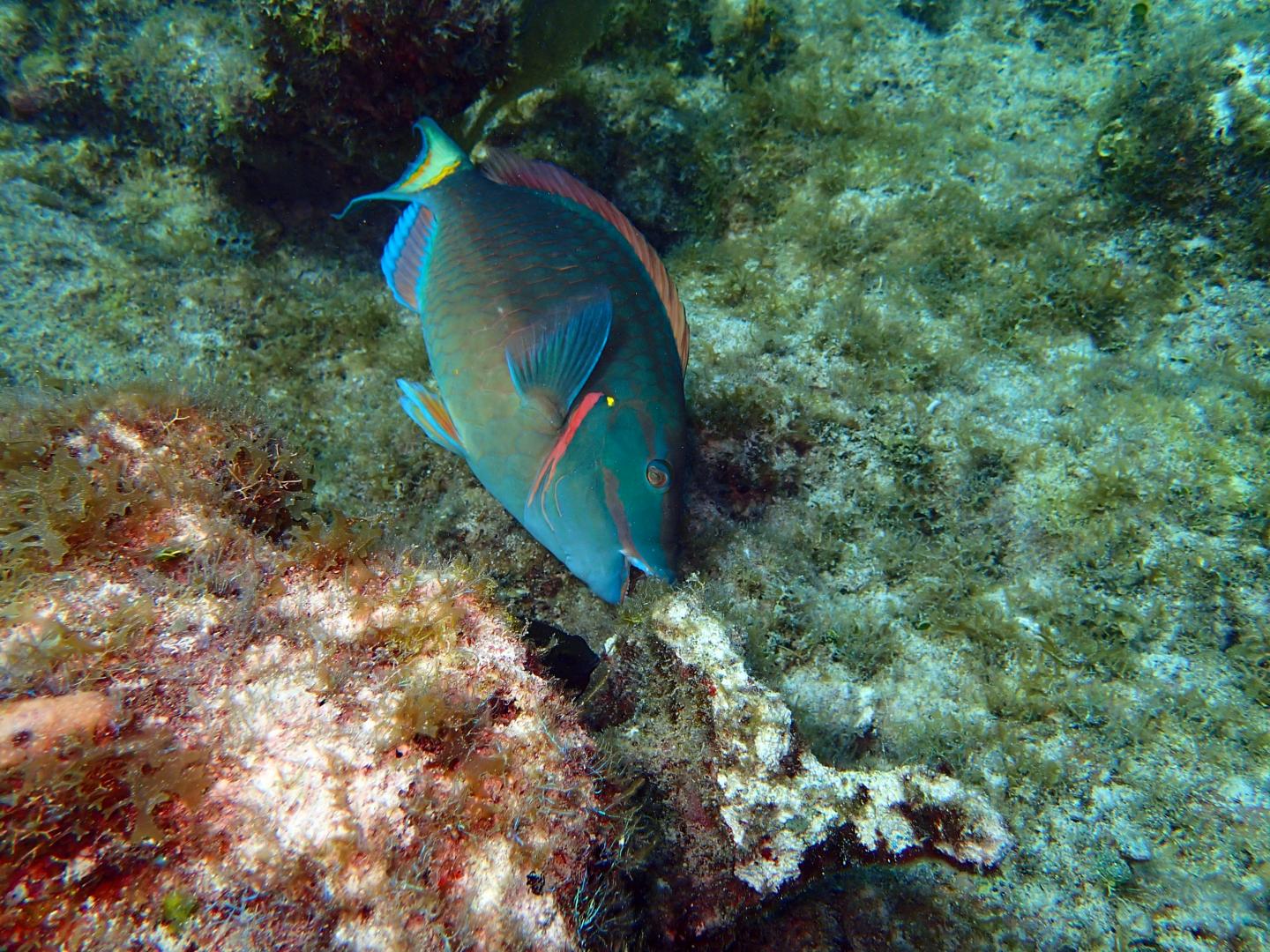 The experiment involved three different enclosures with different sized openings placed on the sea floor around corals in the protected Florida Keys. One enclosure allowed access to fish of any size, the second excluded only the largest parrotfish, and the third excluded large and medium sized parrotfish.