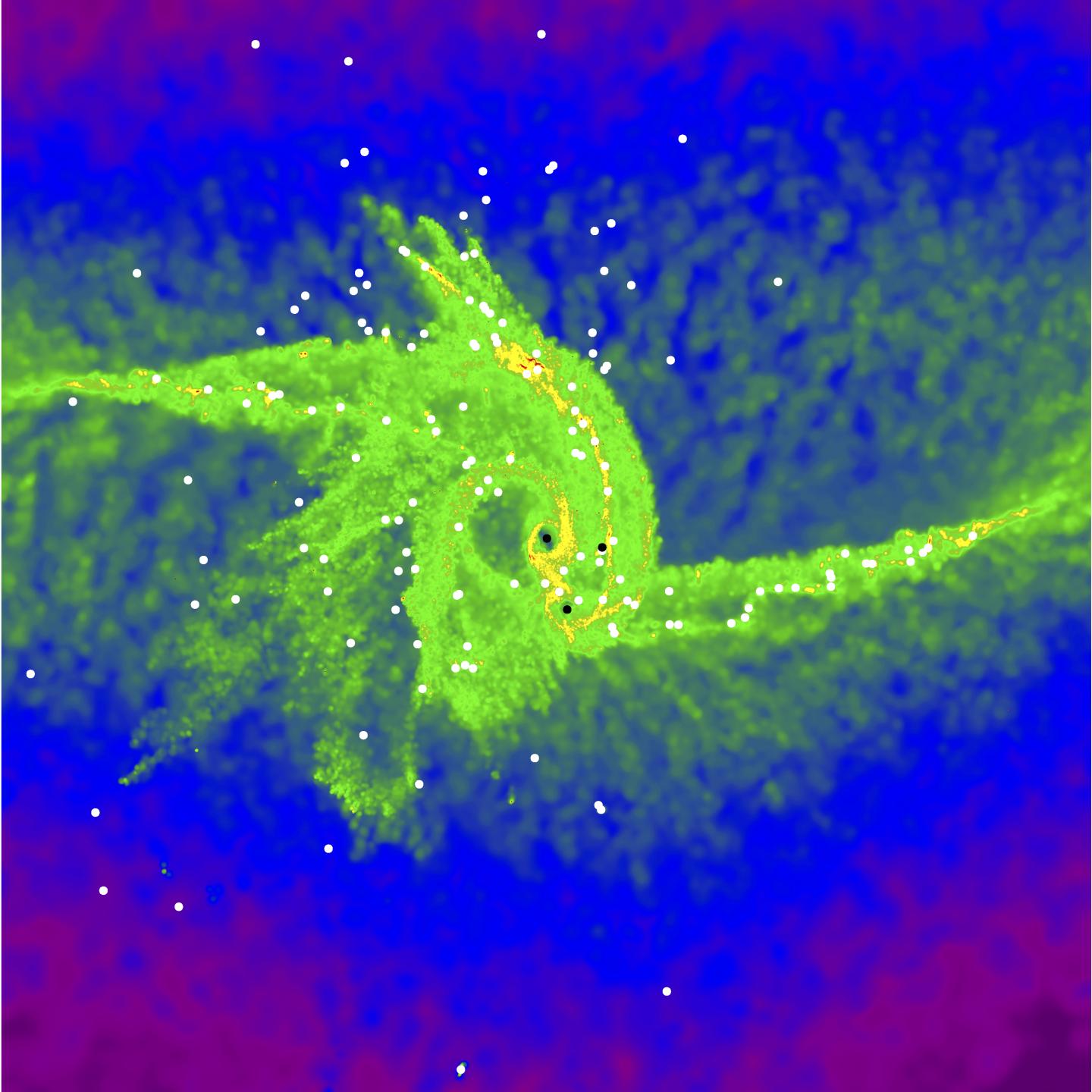 Contrary to previous predictions, the research team found that supermassive stars can still form from heavy-element enriched gas clouds. As expected, the gas cloud breaks up violently and many smaller stars form. However, there is a strong gas flow towards the center of the cloud; the smaller stars are dragged by this flow and are swallowed-up by the massive stars in the center. The simulations resulted in the formation of a massive star 10,000 time more massive than the Sun. "This is the first time that we have shown the formation of such a large black hole precursor in clouds enriched in heavy-elements. We believe that the giant star thus formed will continue to grow and evolve into a giant black hole," says Chon.