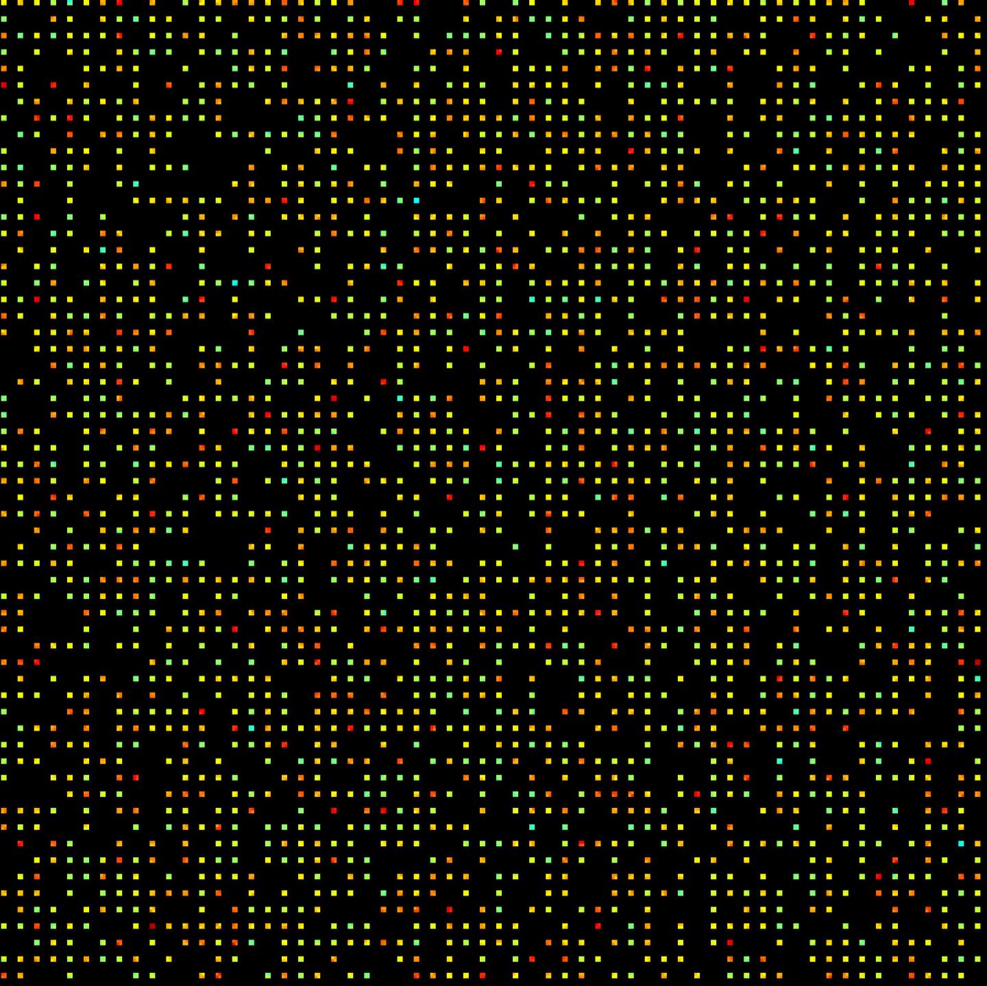 image: A scanned image of a grid containing one cancer cell and some blood inside each colored box. The color of the boxes indicates the amount of oxygen dissolved in the blood.