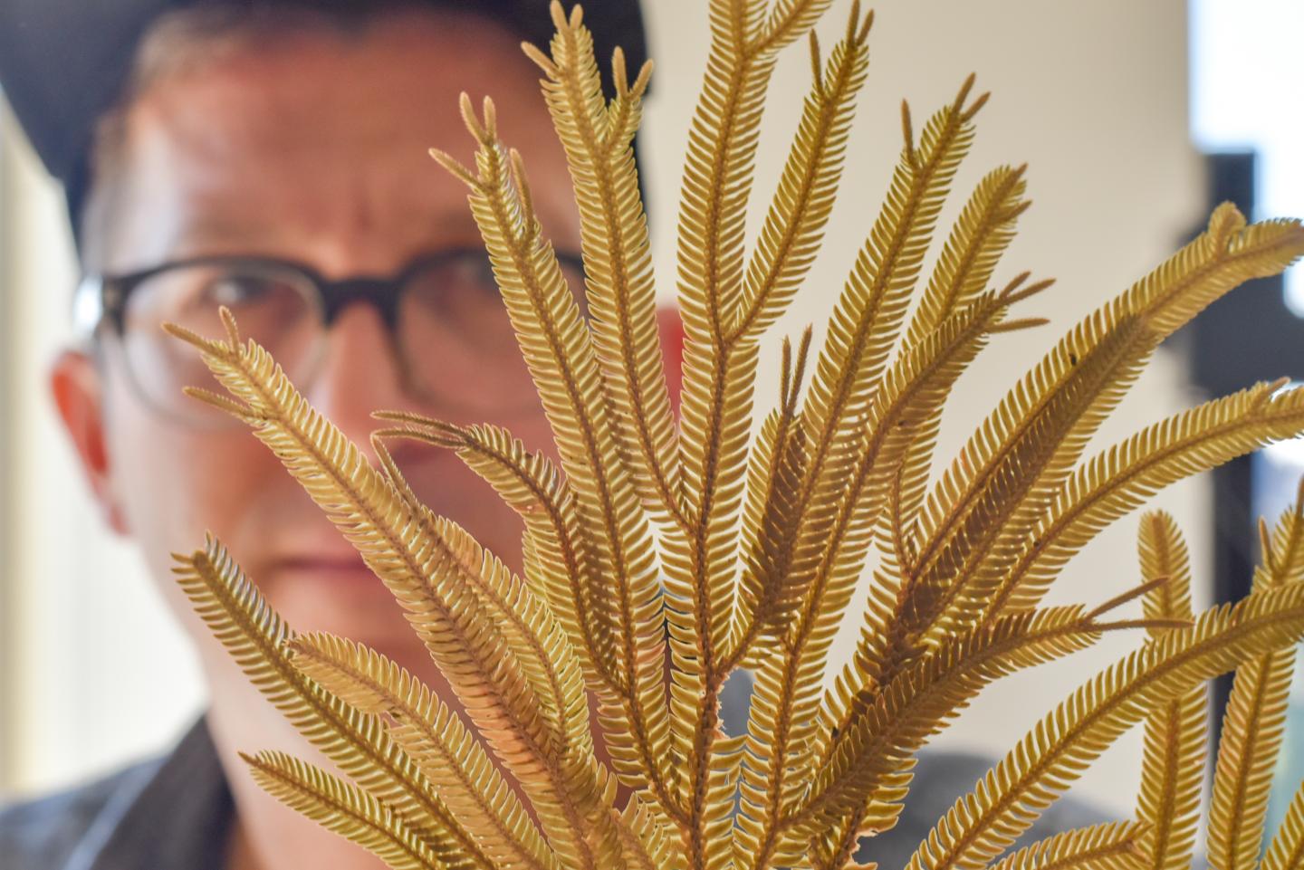 He holds up the dried plant from New Guinea in the bright Vermont sunshine. "That's a pretty handsome Selaginella," Sundue says. "It's one of the most ancient surviving lineages of plants on Earth."