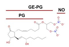 Nitroproston (11(S),15(S)-dihydroxy-9-keto-5Z,13E-prostadienoic acid 1?,3?-dinitroglycerol ester) is a novel prostaglandin-based compound with potential application in obstructive respiratory diseases such as asthma and obstructive bronchitis. Its pharmacological activity is provided by combined multi-target action on prostanoid EP4 receptors and soluble guanylylcyclase. Nitroproston is bearing a prostaglandin E2 (PGE2) moiety modified by an additional NO-donating fragment of glycerol-1,3-dinitrate (1,3-GDN) via ester bond and can be consider as nitrated derivative of glycerol ester of PGE2 ? the natural COX-2 metabolite of endogenous cannabinoid-like molecule 2-arachidonoyl glycerol. The presence of NO-donating fragment extremely changes pharmacological properties of PGE2. Nitroproston is more than 20-fold as active as prostaglandin E2 in the relaxation of respiratory muscles. Due to this enhanced myorelaxant activity Nitroproston is well tolerated by asthmatic subjects and is the first-in-class pharmaceutical candidate for therapy of asthma attacks utilized both prostanoid and NO receptors.