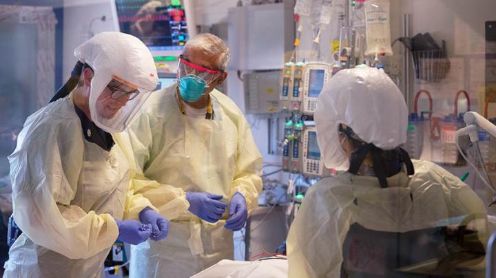 image: A COVID-19 care team at Michigan Medicine, the University of Michigan's academic medical center, in spring 2020