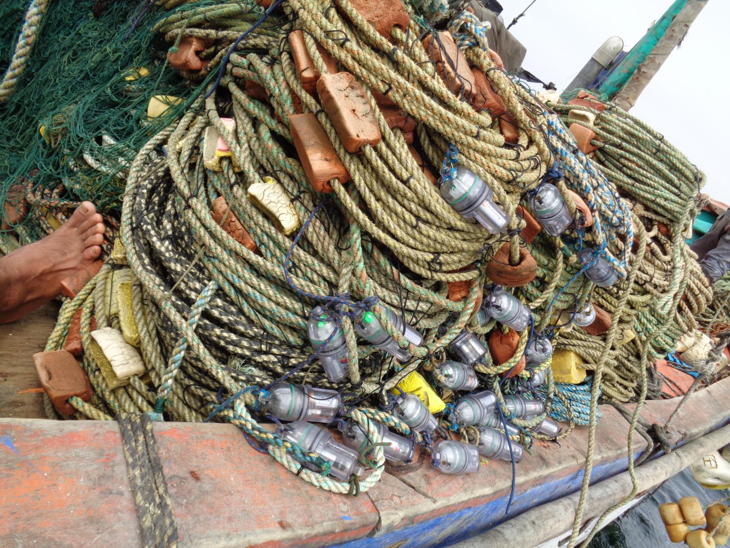 The researchers placed lights every 10m along the float line of 864 gillnets, pairing each with an unlit net to compare the results.
