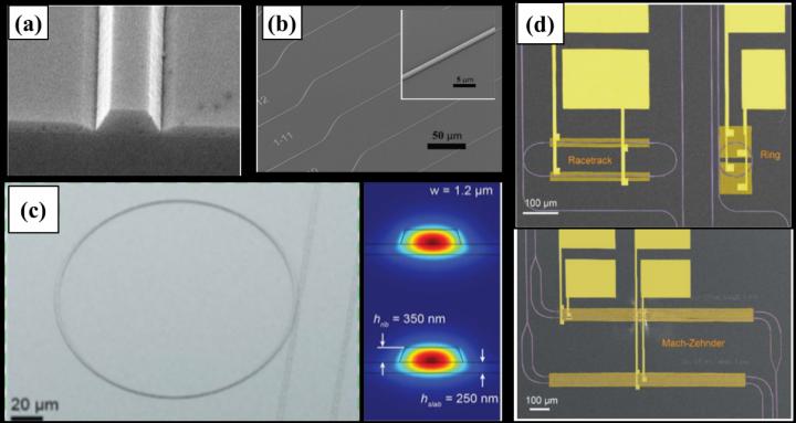 For photonic modulation, both the complementary approaches of microstructure engineering for photonic circuits, i.e., the direct etching of LNOI (monolithic integration) and other photonic materials rib-loaded on LNOI (hybrid integration), are reviewed. The sub-wavelength waveguides with a low propagation loss of 2.7 dB/m as well as an ultra-high Q of 5 × 106 have been fabricated by direct etching on a LNOI platform. Furthermore, The integrated MZI modulator with a small size of several millimeters on a x-cut LNOI exhibited a very high bandwidths of up to 100 GHz. The smart cut method for the preparation of wafer-scale LNOI samples (NanoLN, Jinan Jingzheng Electronics Co., Ltd.) greatly promoted the development of integrated lithium niobate photonics. the substitution of z-cut LN film by a x-cut LN film greatly promoted the integration level of photonic circuits. The channel patterns with electrodes were easily transferred into a x-cut LN film, while the bottom electrode generally occupy the whole plane for a z-cut LN film. Importantly, the gold electrodes can be placed very tightly from the edge of a resonator on a x-cut LN film, which results in strong phase modulation without affecting the Q factor.