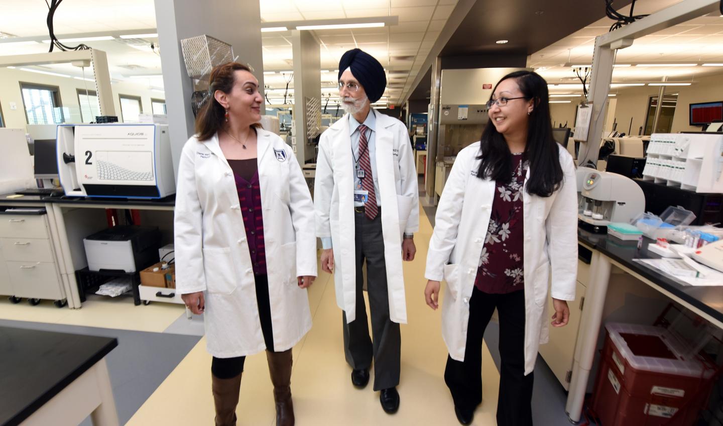 image: Dr. Gurmukh Singh, vice chair of pathology at the Medical College of Georgia and pathology residents, Drs. Diana Kozman and Samantha Mattox