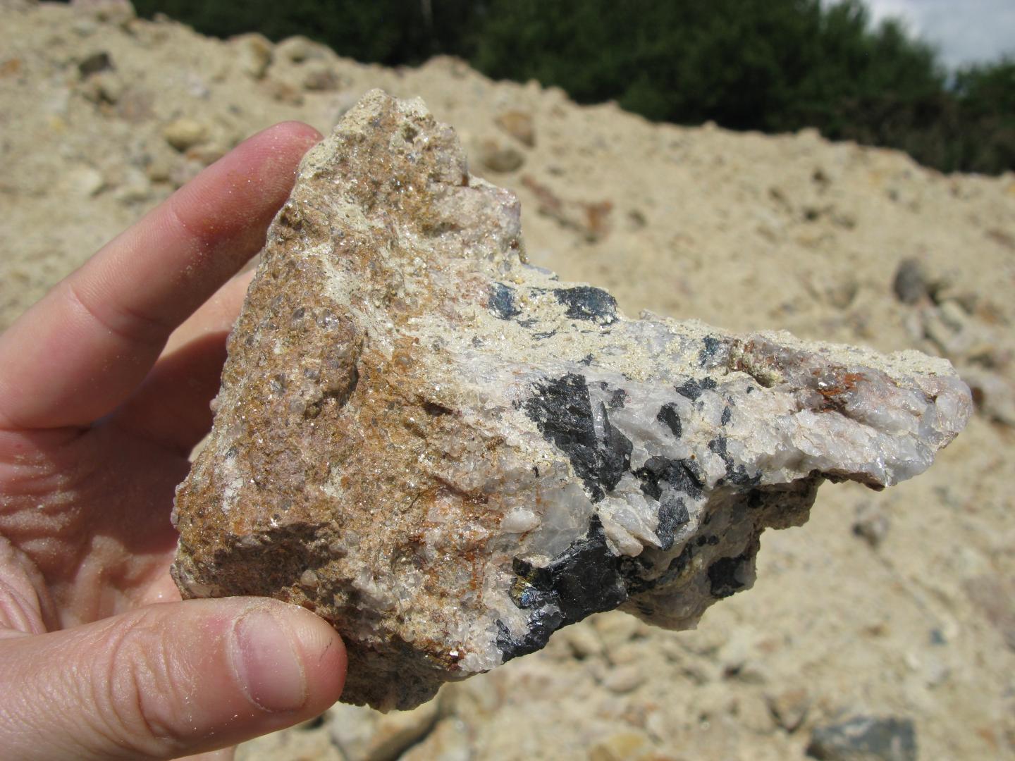 image: Quartz vein containing wolframite (black) - this is the most important tungsten-bearing mineral in SW England
