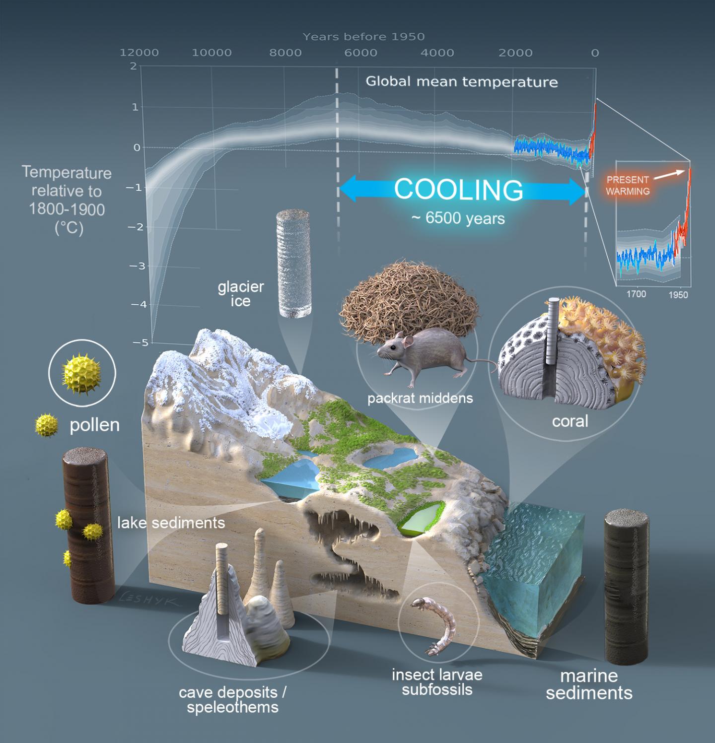 Four researchers of Northern Arizona University's School of Earth and Sustainability (SES) led the study, with Regents' professor Darrell Kaufman as lead author and associate professor Nicholas McKay as co-author, along with assistant research professors Cody Routson and Michael Erb. The team worked in collaboration with scientists from research institutions all over the world to reconstruct the global average temperature over the Holocene Epoch--the period following the Ice Age and beginning about 12,000 years ago.