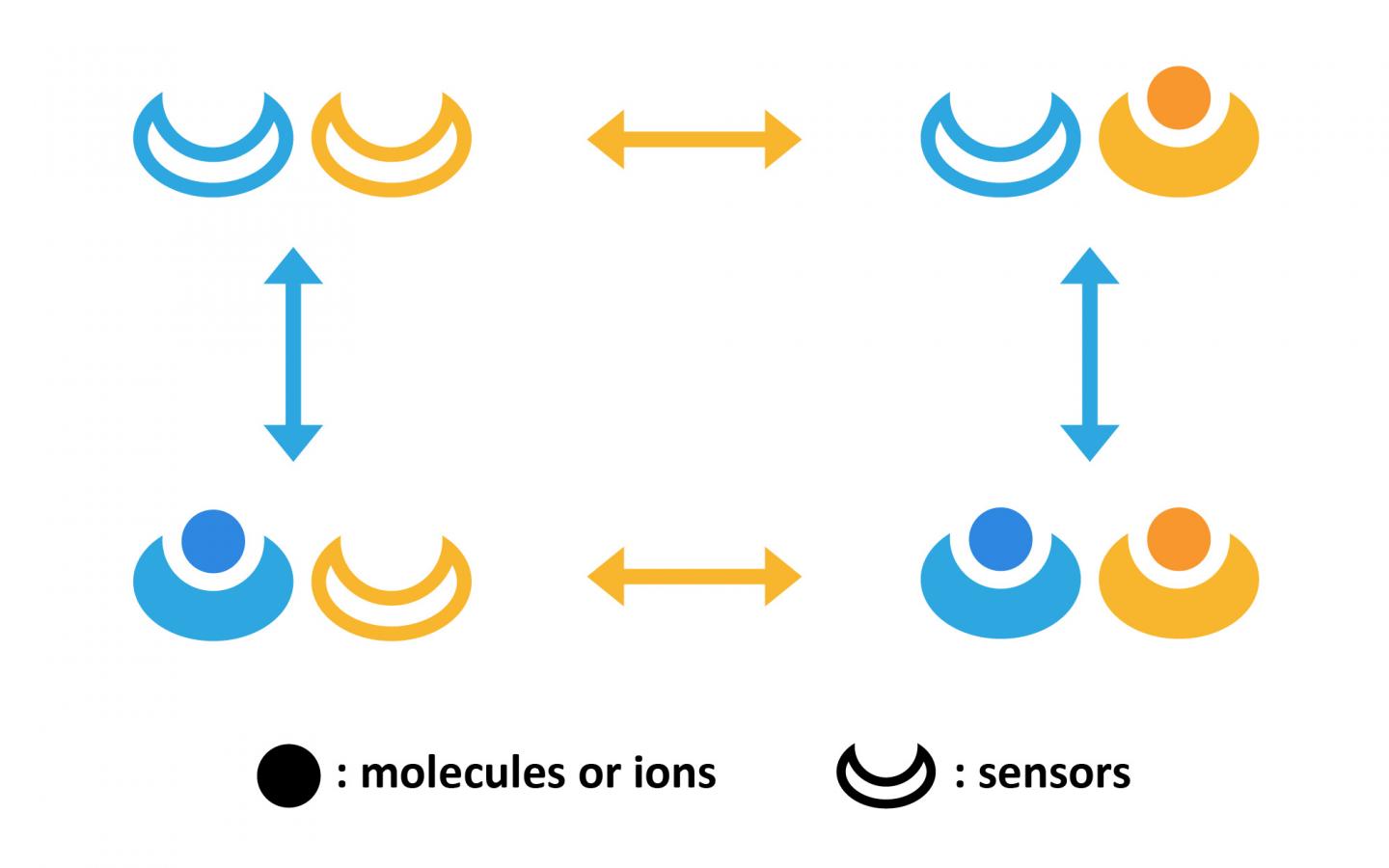 On their computers, the scientists created the model that represented a cell. The cell had two sensors (or information processing units), which responded to the environment outside the cell. The sensors could either be bound to a molecule or ion from the outside, or unbound. When the number of molecules or ions in chemical cocktail outside the cell changed, the sensors would respond and, depending on these changes, either bind to a new molecule or ion, or unbind. This allowed the cell to gain information about the outside world and thus allowed the scientists to measure what could impact its sensitivity.
