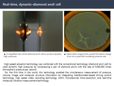 This technology is an independent technology that can simultaneously measure the pressure, volume, image, and molecular structure of materials by integrating driving control and molecular vibration measurement technologies to the diamond anvil cell, which implements an extremely high-pressure environment.
