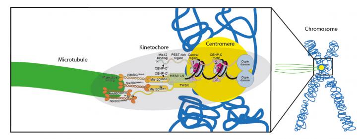 MPI scientists had to overcome a major hurdle to rebuild the kinetochore, namely to fully reconstruct the highly flexible Centromeric Protein C (CENP-C). This is an essential protein that bridges the centromeric region to the outer proteins of the kinetochore. Researchers rebuilt CENP-C by "gluing" together the two ends of it.
