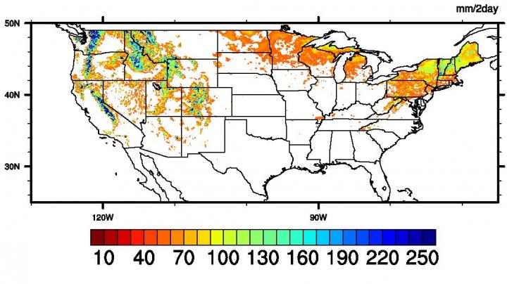 Their maps also reveal that in most cases, extreme snowmelt is caused by unusually warm temperatures. This conclusion is fairly intuitive, but a surprising finding revealed that in certain regions, particularly in the Pacific Northwest and the northeastern U.S., extreme snowmelt events are driven by rain - which is relatively warm - falling on snow. In these cases, extreme snowmelt events become immediately dangerous.