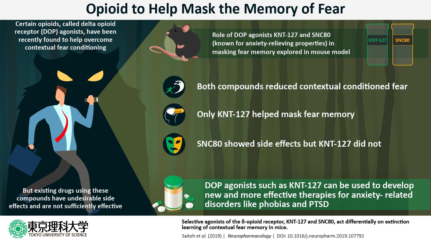 In the thick of such clinical explorations, scientists from the Tokyo University of Science and the University of Tsukuba, Japan, led by Professor Akiyoshi Saitoh, first discovered the depression- and anxiety-relieving effects of DOP agonists. Subsequently, in a new study published inNeuropharmacology in 2019, they explored the potential of these agonists to help in the fear memory masking process. "We looked at the effects of DOP agonists on anxiety and fear memory, which have not been sufficiently studied so far," explains Prof Saitoh.