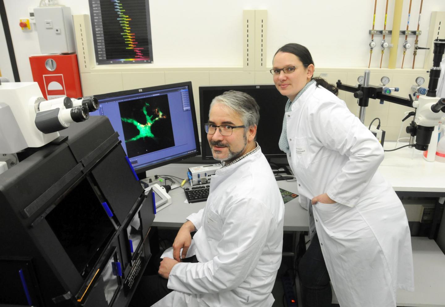 image: Dipl.-Ing. Jan Dudeck, Responsible for Intravital Microscopy at the Multi-Parametric Bioimaging and Cytometry (MBPIC) Platform, Medical Faculty, Otto-von-Guericke Universityand Prof. Dr. rer. nat. Anne Dudeck, Principal investigator of the group Immunregulation, Institute for Molecular and Clinical Immunology, Medical Faculty, Otto-von-Guericke University