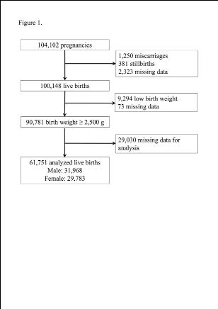 This study used the data of approximately 100,000 pregnant women fixed in April of 2016. Of these, data of 61,751 women was eventually analyzed, which excluded data of stillbirths, miscarriages, infants with a birth weight less than 2500g, and those missing data in factors that are considered relevant. Information also included maternal use of insect repellents for clothes during pregnancy, indoor spray insecticides, mosquito coil, electric mosquito repellents, pesticides and insecticides for gardening, spray or lotion type insect repellents.