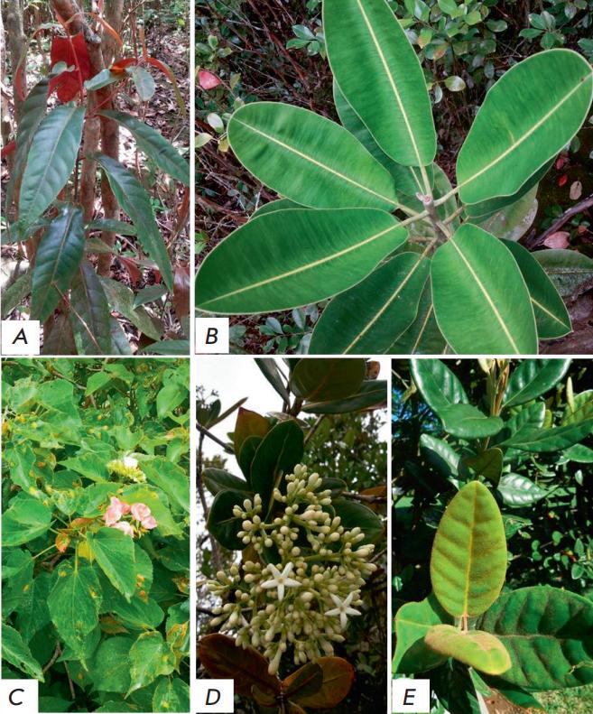 C - D. acutangula (MAU 0016638); D - G. psychotrioides (MAU 0009450); - E. tinifolia (MAU 0016540)