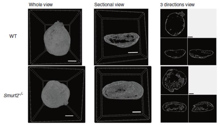 In the Smurf2-deficient mice, ectopic bone induced by bone morphogenetic protein (BMP) was large and composed of abundant trabecular bone.