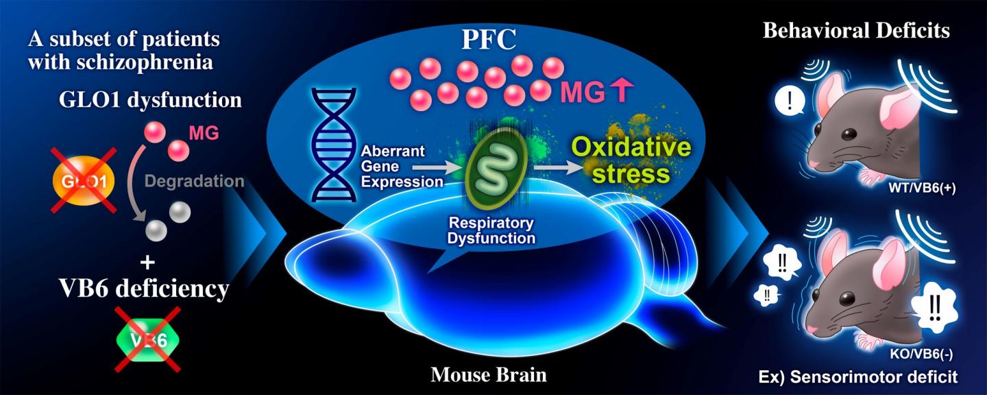 This is the first report to show that MG detoxification deficits are involved in the development of schizophrenia. Considering the molecular mechanism revealed in this study, antioxidants to prevent oxidative stress and VB6 supplementation may be effective as a new therapeutic strategy for patients with MG detoxification deficits, GLO1 dysfunction and VB6 deficiency.
