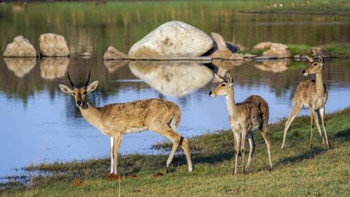 Hodgkins and her team wanted to understand those migratory patterns. They studied the carbon and oxygen isotopes within the tooth enamel of many large herbivores, including Redunca, or reedbuck, a nonmigratory antelope. Tooth enamel can reveal a pattern of migration by tracking changing levels of carbon from the plants an animal eats as its teeth grow.