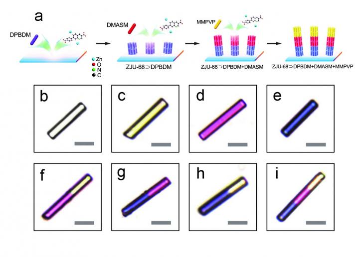 "Of course, the size matching between the host framework channels and the dye molecules is also an important factor for the final successful hierarchical assembly. Because we need the prepared dye-loaded crystal segments to not leak the previous dye molecules during the epitaxial growth process." they added.