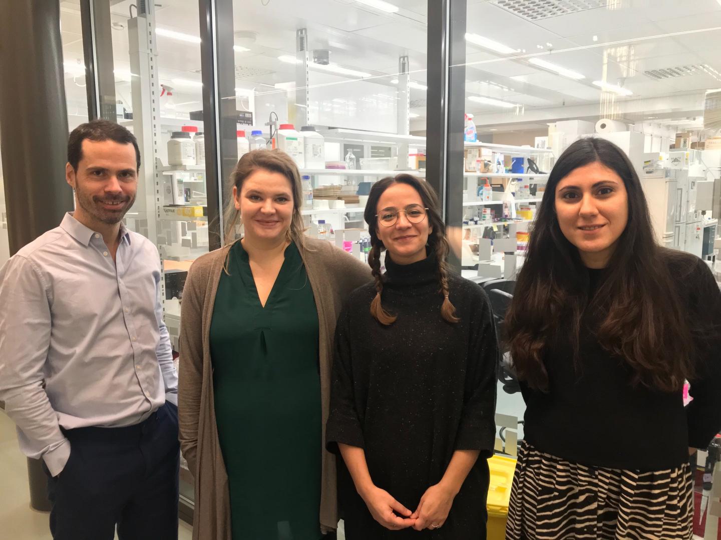 image: From left: Konstantinos Meletis, Antje Märtin, Daniela Calvigioni and Rania Tzortzi, researchers at the Department of Neuroscience at Karolinska Institutet.