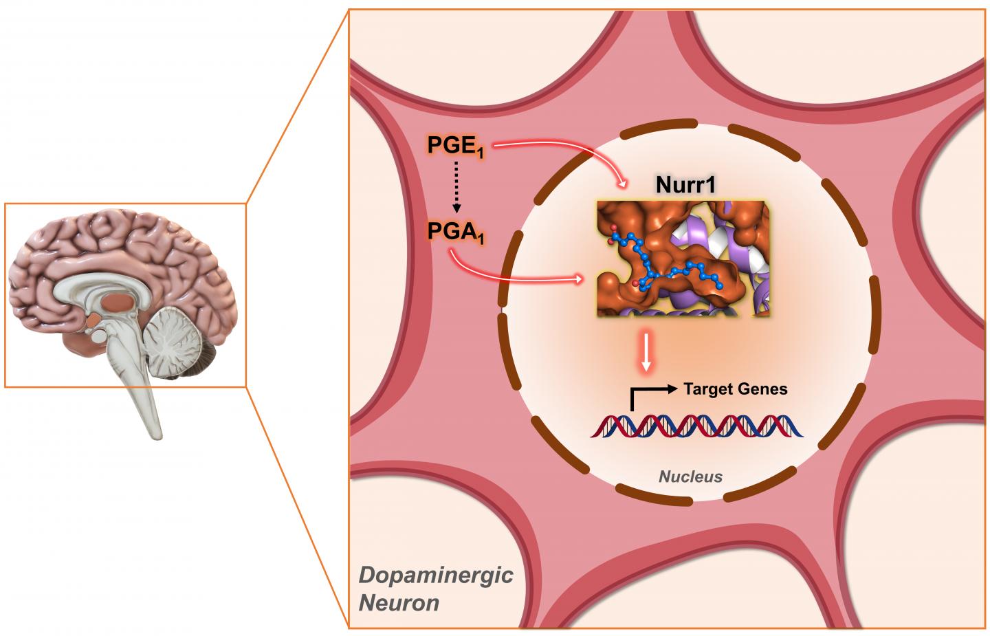 PGE1 and PGA1 do so by binding to Nurr1, a class of proteins crucial to the development and maintenance of dopamine in the brain.