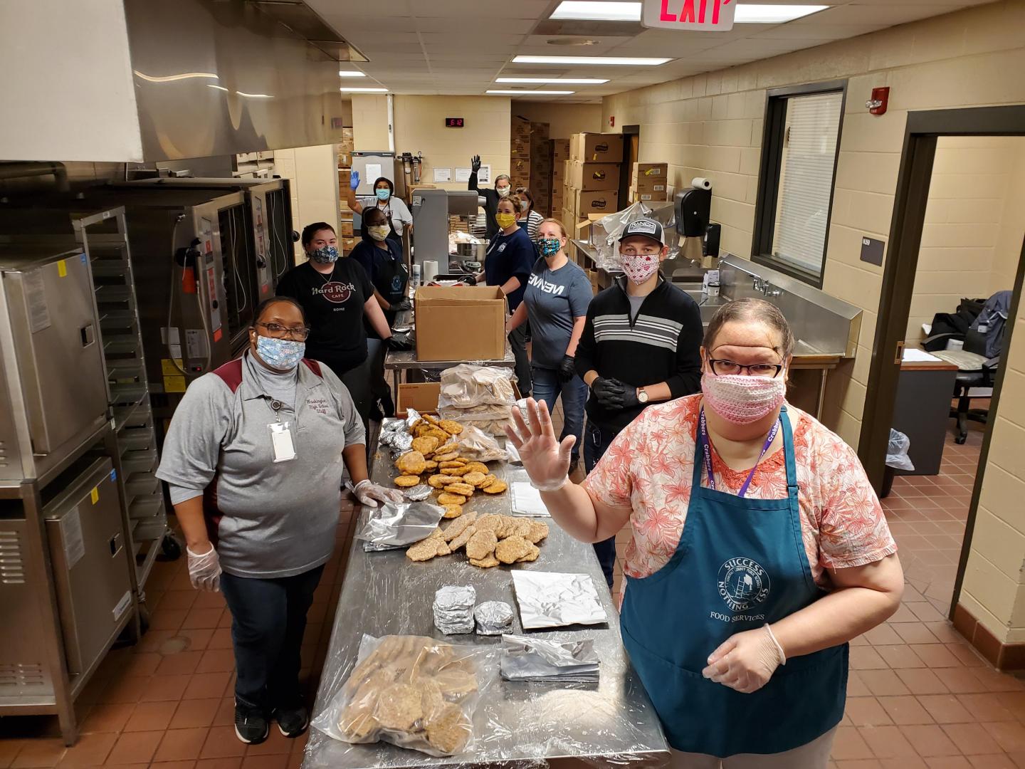image: School workers in Maryland's Somerset County prepare meals during the pandemic.
