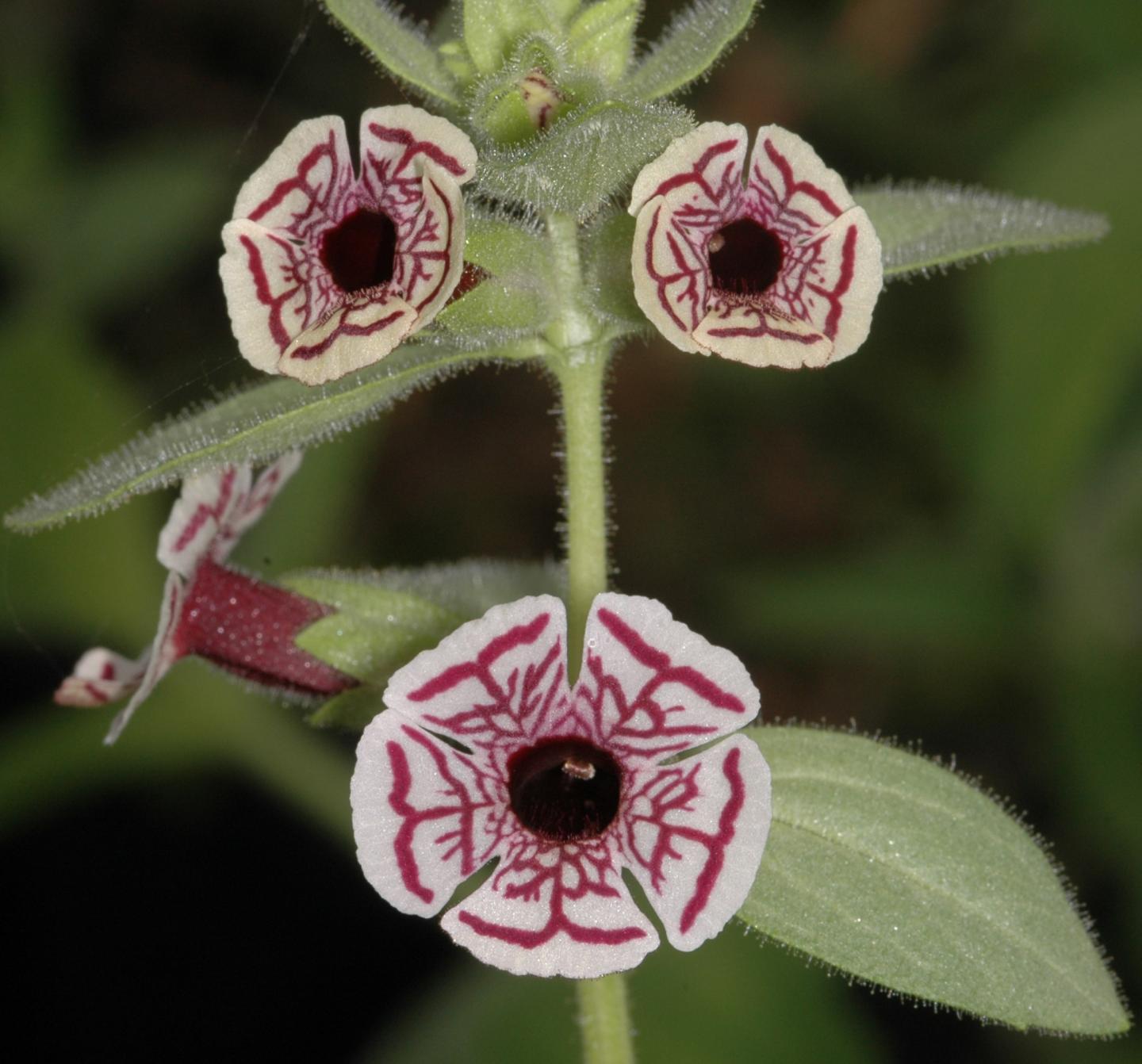 image: An example of the variations seen in Mimulus species, this flower is Mimulus pictus, shows how intricate patterns can arise.