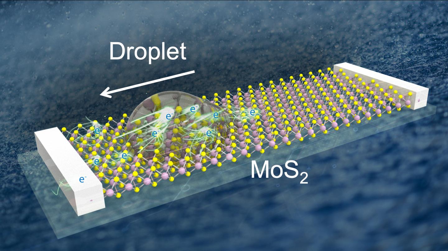 image: A droplet moving on MoS2 generates the voltage as high as 5 V