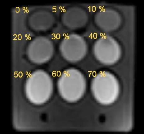 image: DWI of the phantom with polyvinylpyrrolidone (PVP) solutions (b value 500 s/mm2).