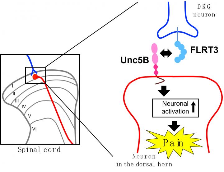Explains senior author Toshihide Yamashita, "Our results suggest that FLRT3 is produced by injured neurons in the dorsal root ganglion, causing neuronal excitability in the entire dorsal horn and subsequent pain sensitization. This is a novel role for FLRT3, and provides new avenues to explore in the search for effective treatments for neuropathic pain."