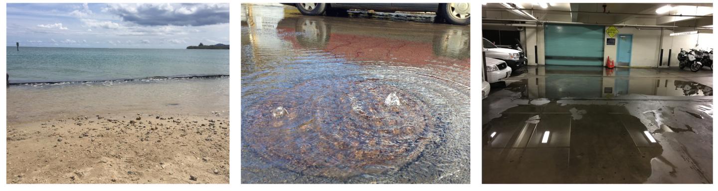 Today and as sea level continues to rise in the future, extreme high tide events cause Honolulu, Hawai'i's primary urban center to experience flooding not just from water washing directly over the shoreline, but also from groundwater inundation as the water table is pushed toward the surface, and reverse flow through the municipal drainage system. In a study published in Scientific Reports, researchers at the University of Hawai'i at Mānoa School of Ocean and Earth Science and Technology, found in the next few decades, sea level rise will likely cause large and increasing percentages of land area to be impacted simultaneously by the three flood mechanisms.