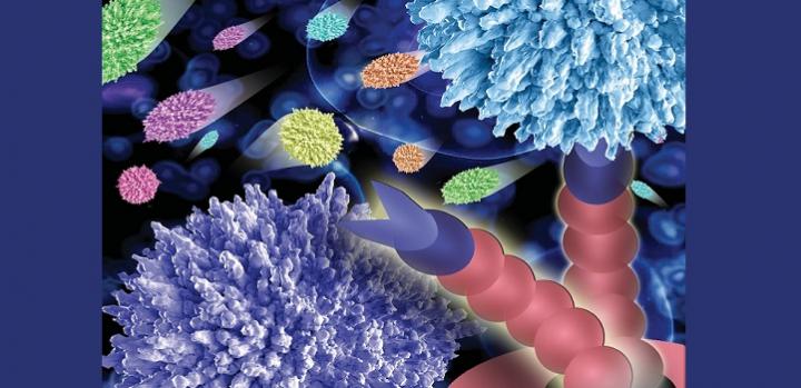 image: The new assay developed at KAUST is a fluorescent multiplex cell rolling assay that uses unique fluorescent tags to label up to seven cell population types.