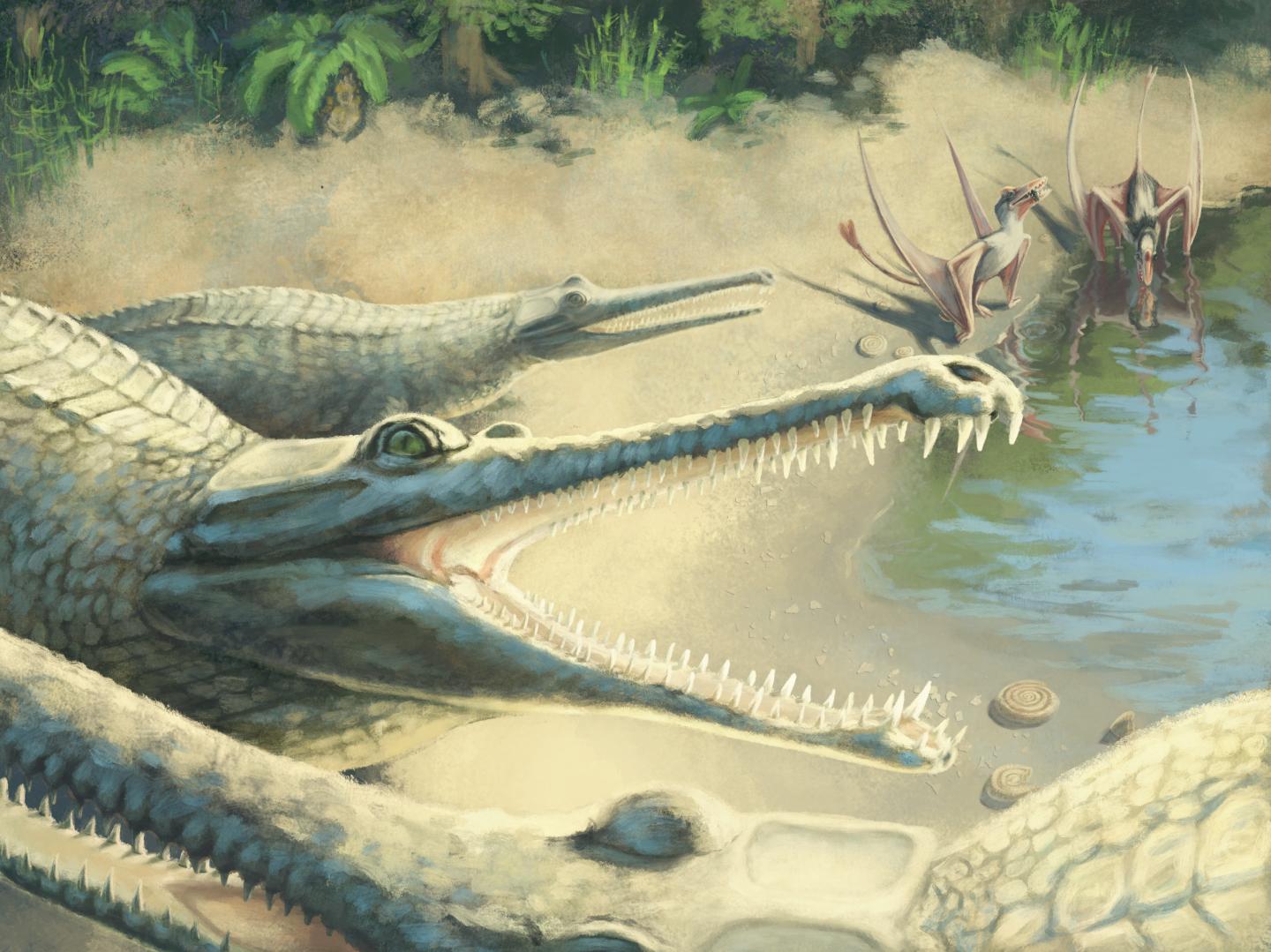 Sven Sachs, of the Naturkunde-Museum Bielefeld, who led the study, said: "Mystriosaurus looked like a gharial but it had a shorter snout with its nasal opening facing forwards, whereas in nearly all other fossil and living crocodiles the nasal opening is placed on top of the snout."