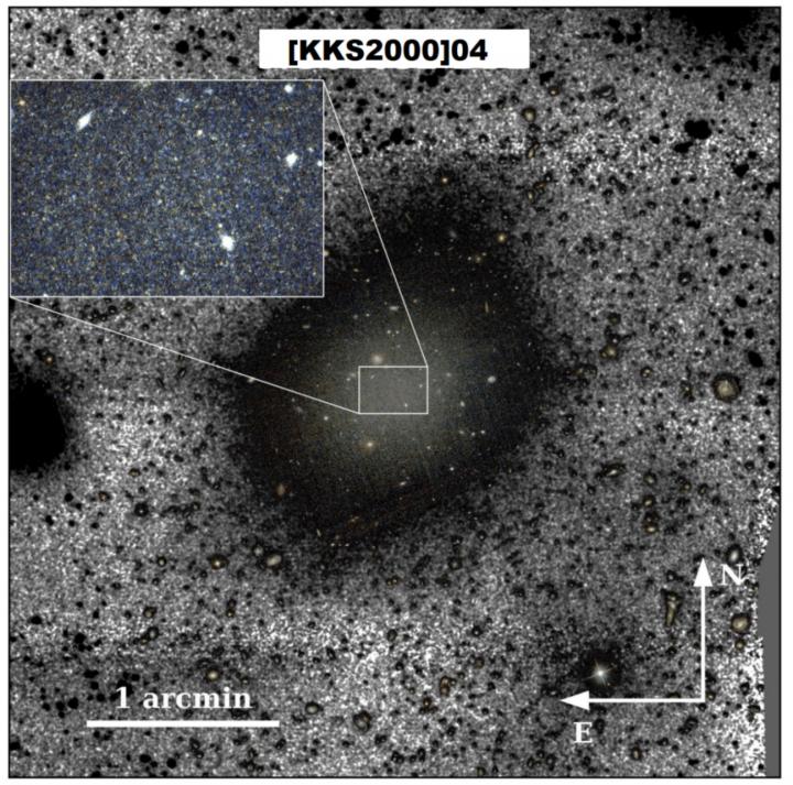 image: The ultra-diffuse galaxy KKS2000]04 (NGC1052-DF2), towards the constellation of Cetus, considered previously a galaxy with no dark matter. Credit: Trujillo et al.
