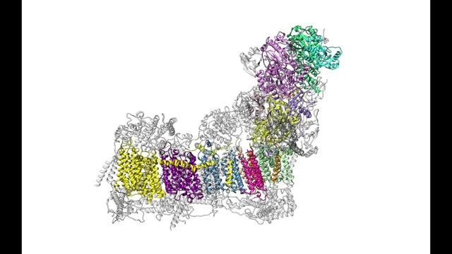 Complex I is the first enzyme in the respiratory chain, a series of protein complexes in the inner mitochondrial membrane. The respiratory chain is responsible for most of the cell's energy production. In this chain, three membrane proteins set up a gradient of protons, moving them from the cell's cytoplasm into the mitochondrial inner space, called the matrix. The energy for this process comes mostly from the electron transfer between NADH molecules, derived from the food we eat, and oxygen that we breathe. ATP synthase, the last protein in the chain, then uses this proton gradient to generate ATP. Complex I is remarkable not only because of its central role in life, but also for its sheer size: with a molecular weight of 1 Megadalton, the eukaryotic complex I is one of the biggest membrane proteins. Its size also makes complex I hard to study. In 2016, Sazanov and his group were the first to solve the structure of mammalian complex I, following on their 2013 structure of a simpler bacterial enzyme. But the mechanism by which complex I moves protons across the membrane has remained controversial. "One idea was that a part of complex I works like a piston, to open and close channels through which protons travel", explains Sazanov. "Another idea was that residues at the center of complex I act as a driver. It turns out that an even more unusual mechanism is at work."