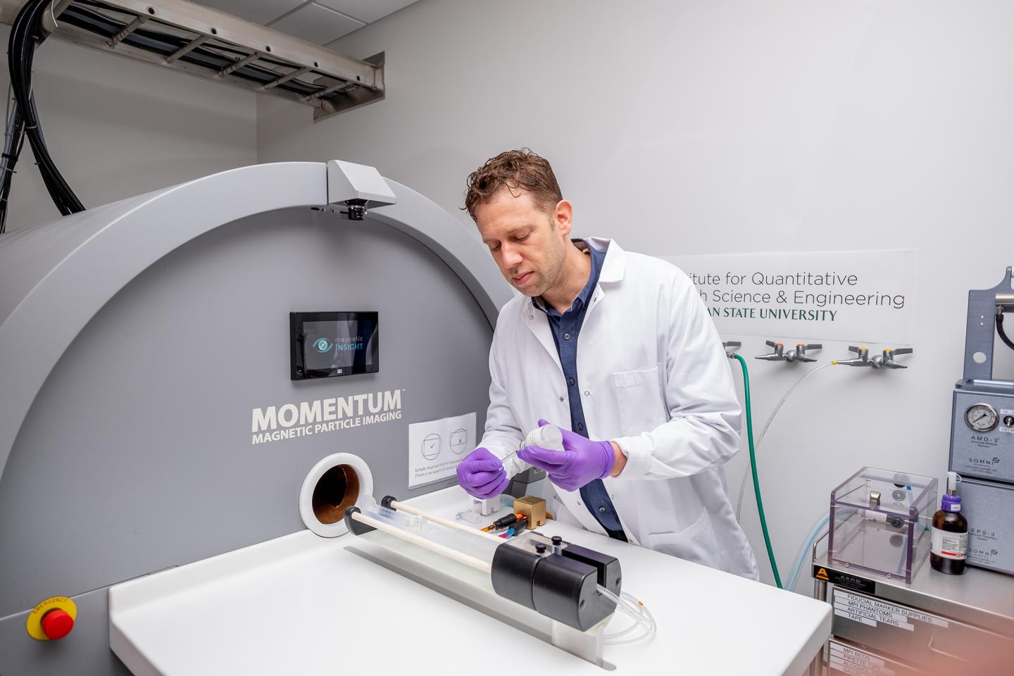 Bryan Smith, associate professor of biomedical engineering, created a process based around magnetic particle imaging (MPI) that employs superparamagnetic nanoparticles as the contrast agent and the sole signal source to monitor drug release in the body - at the site of the tumor.
