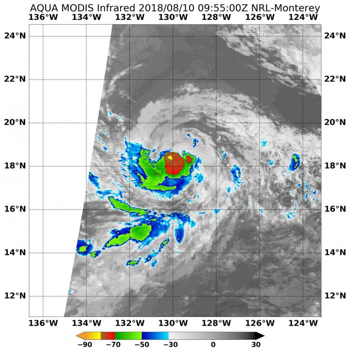 On Aug. 10. Infrared data from NASA's Aqua satellite provided forecasters with temperature data that showed strong storms.