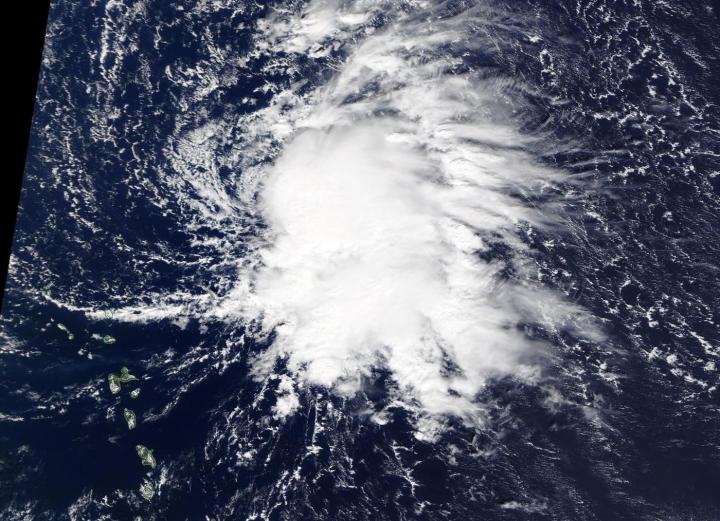 NASA's Aqua satellite captured an image of newly formed Tropical Storm Sebastien, located northeast of the Leeward Islands in the Atlantic Ocean.